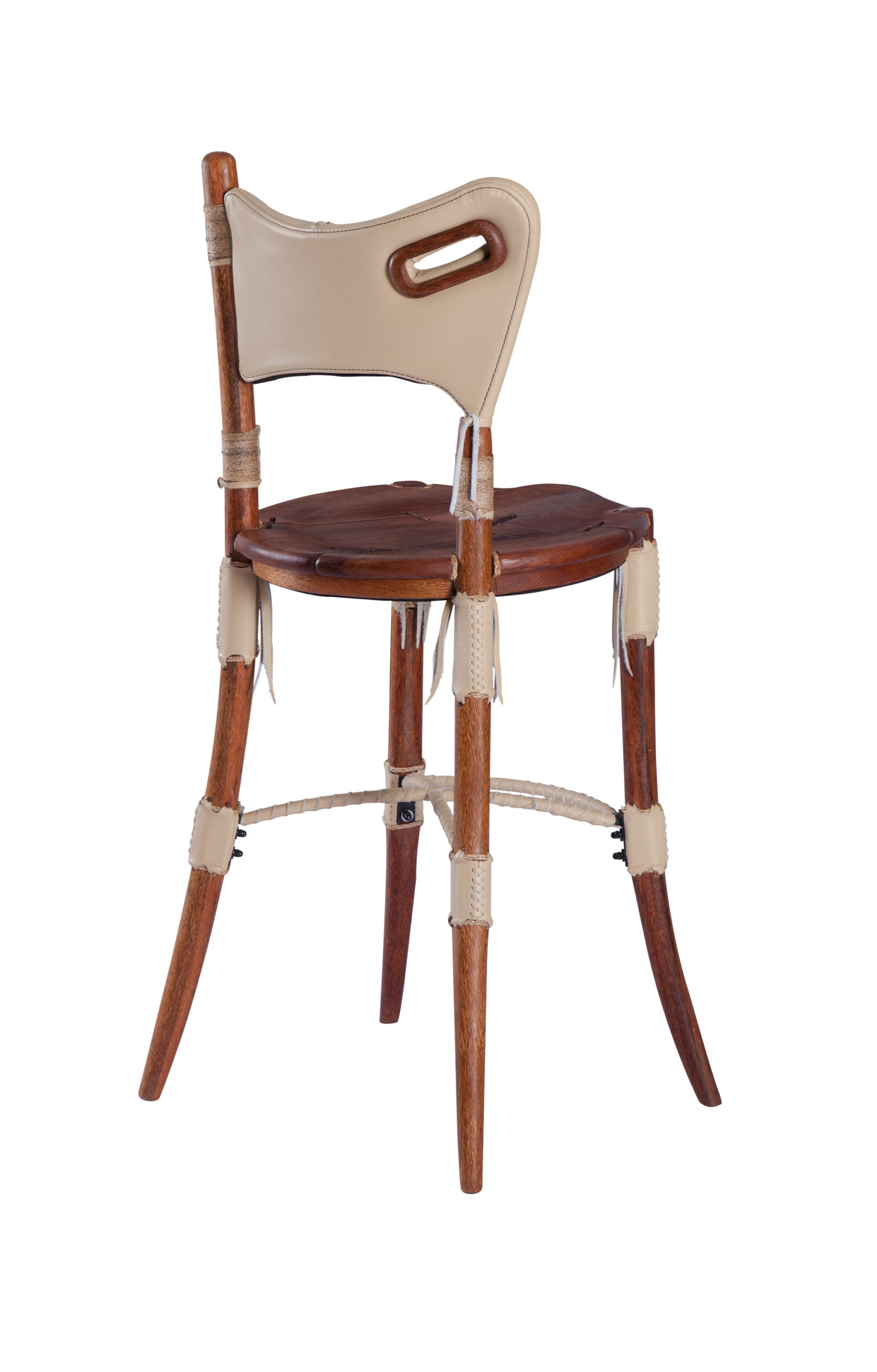A versatile and hard-wearing chair with flair. Constructed from Palmwood, steel and leather. Pictures show the Barstool as Left hand facing. Available in Hair on Hide colors along with multiple different leather choices. Call our store for more information.